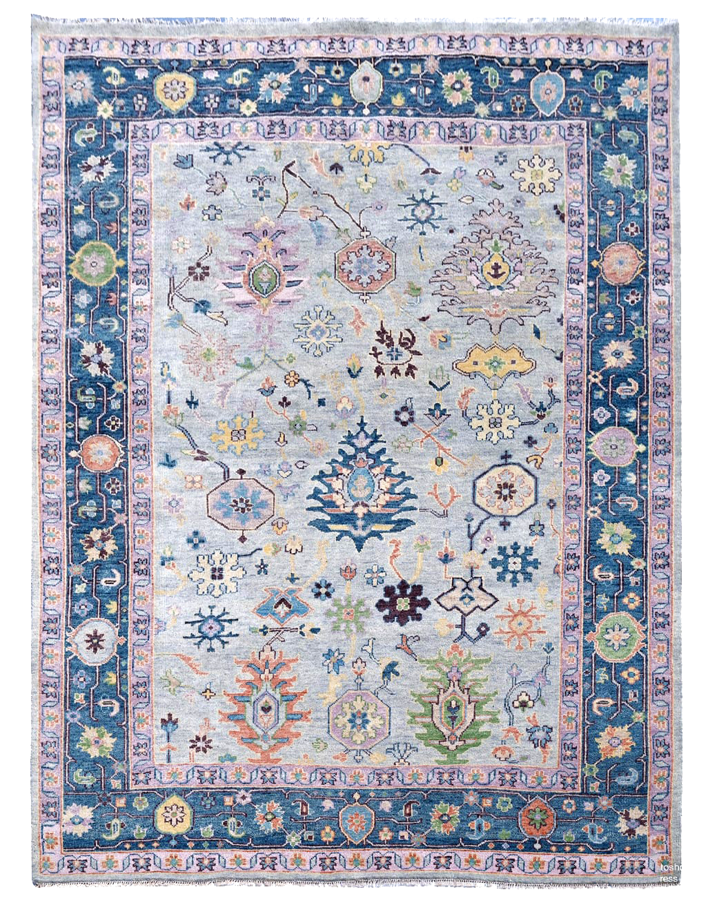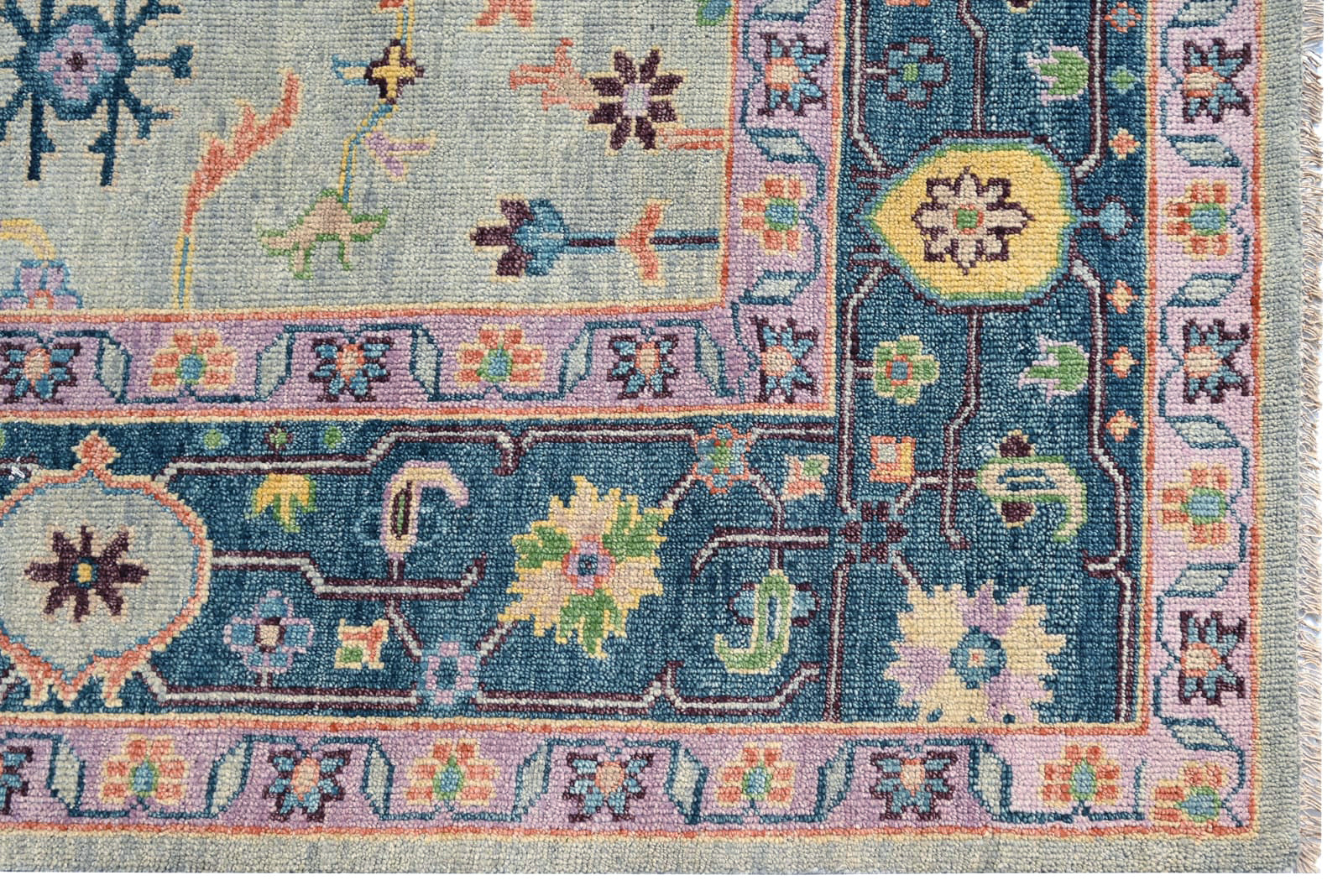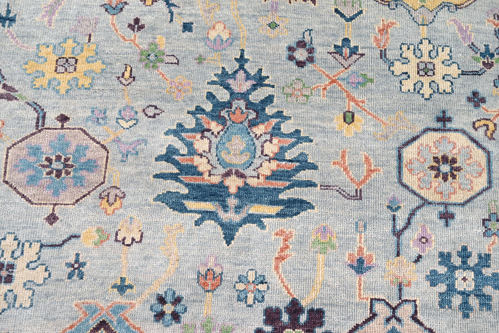 9X12 Oushak Blue Hand-Knotted Wool Area Rug